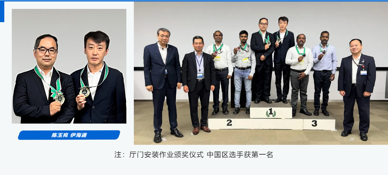 在本屆TTM大會中,東芝電梯中國區(qū)的選手們表現(xiàn)出色,參與了控制裝置的組裝、廳門安裝作業(yè)及電梯定期檢查三個項(xiàng)目,斬獲了2金1銀的優(yōu)異成績,展現(xiàn)了領(lǐng)先的技術(shù)實(shí)力、嚴(yán)謹(jǐn)?shù)墓そ尘窈妥吭降膱F(tuán)隊(duì)協(xié)作能力。